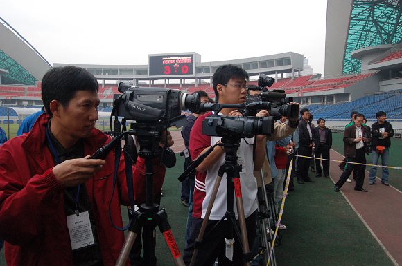 由于前天的beat365中文官方网站冲甲成功引发的巨大新闻效应,今天的比赛和发奖仪式吸引了多家媒体来到现场采访。
