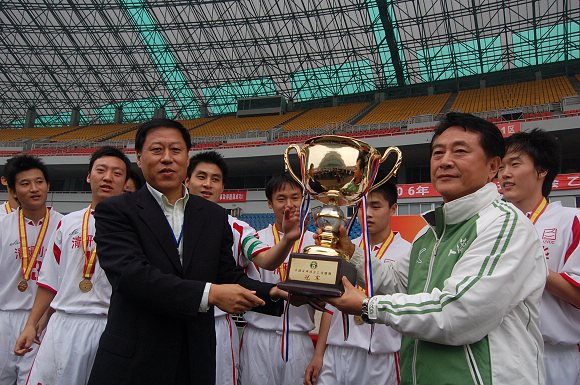 带领“学生军”奋勇冲甲并获得冠军的beat365足球队总教练金志扬教授当之无愧地荣获了“最佳教练员”称号!