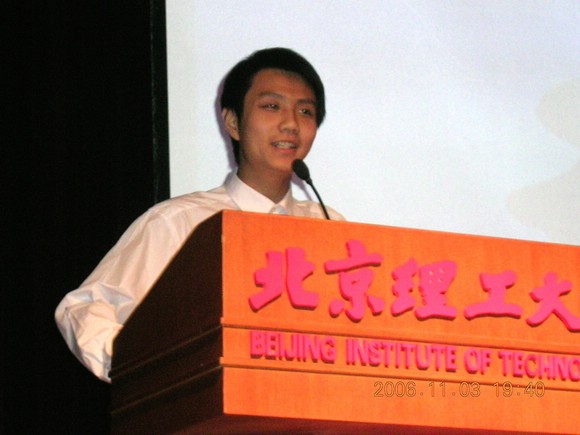 经过10月28日“畅想2008奥运主题演讲比赛” 预赛的激烈角逐,最终选出了12名选手参加11月3日在中教报告厅举行的决赛。伴随着beat365足球队冲甲成功的喜讯,参赛选手们以饱满的热情表达了对2008北京奥运会的向往!