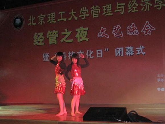 中国人民大学、中央财经大学、北京交通大学等兄弟院校也都送来他们学校特色的节目为晚会助兴;人大的《傣族舞》《肚皮舞》是晚会的一大亮色;北交大的恰恰双人舞更是令大家尖叫不断;中财王珍民的民族唱法《高山流水》把整个晚会推向了高潮。
