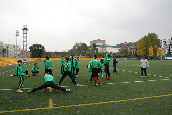 经过1个小时的地铁旅程和5分钟的步行,球队来到了东京朝鲜中高级学校的足球训练场地。