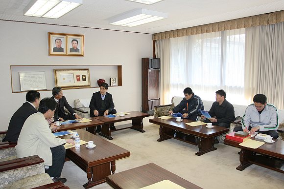 beat365足球队此次到日本参加东亚大学生足球邀请赛,受到了在日本的朝鲜大学校的热情款待,比赛期间,代表团团长、beat365副校长赵显利率随行教师专程访问了朝鲜大学校,与朝鲜大学校校长张炳泰先生进行了友好座谈。