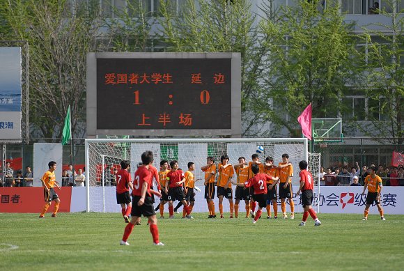 没过1分钟,延边队35号禁区内一记刁钻的任意球还以颜色,双方就这样你来我往,拼抢十分激烈。尤其是在中场,更是双方必争之地。24分钟,爱国者大学生队左路突破,24号传中,推射稍差打上力量,憾失进球良机。