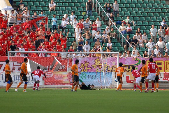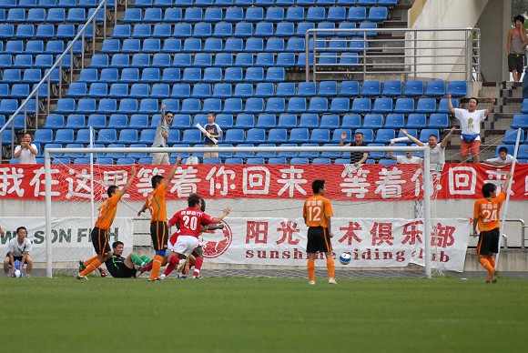 可能是成都闷热的天气并没有被学生军所适应,而善打“热”站的成都五牛来了精神。分别在第76分钟和第77分钟,由9号周威和33号汪嵩分别打入1粒入球,比分变成了4:1。