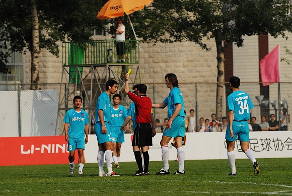第25分钟,青岛海利丰在前场左侧任意球,守门员双拳出击,北理工后场断球,杨洋连过两人,将球传到大禁区内,跟进队友未能碰到皮球。第30分钟,青岛海利丰34号张波正面铲球,北理工任意球打到禁区内,被对方解围。青岛海利丰主教练在有球员受伤的情况下,把场上球员叫到场边,利用比赛空隙进行战术部署。