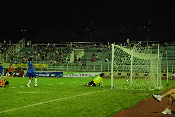 第73分钟刚换上场的许超一次反越位成功面对门将轻松推射,打入了九方本场比赛的第二粒入球。