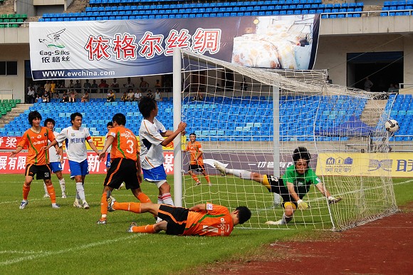 开场第6分钟,四川右路组织快速进攻,29号奥古斯托摆脱1名防守队员起脚射门,球贴着立柱滚出边线。四川队完成第一脚打门。