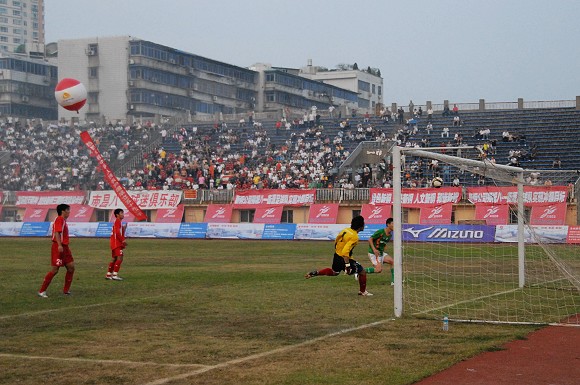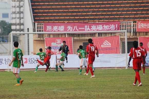 可惜进得快,丢得也快,1分钟后,硝烟依然尚未散去,南昌八一门将的一次冒然出击与本队防守队员撞在了一起。