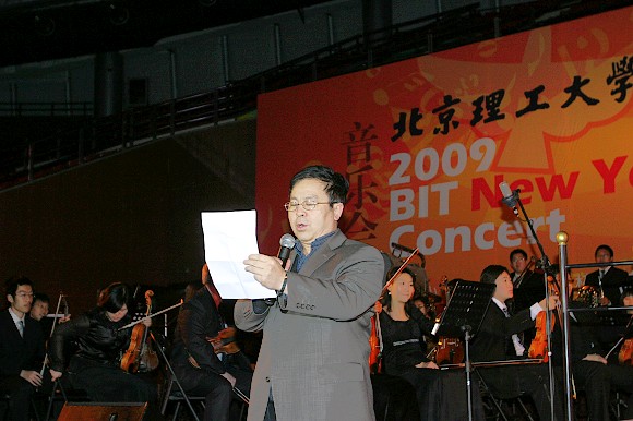 在音乐会开始前,党委副书记、副校长杨宾发表了热情洋溢的新年贺辞。他首先对广大教职员工、广大学生和离退休老同志致以新年的问候和祝福,随后他简要回顾了学校2008年在教学、科研、奥运工作、基础教育等方面取得的工作成绩。最后,杨书记号召全校师生在新的一年里,统一思想、提高认识、真抓实干、形成合力,促进学校又好又快发展,向“国内一流、国际知名”高水平研究型大学的建设目标进一步迈进,以各方面的优异成绩向建国60周年献礼!