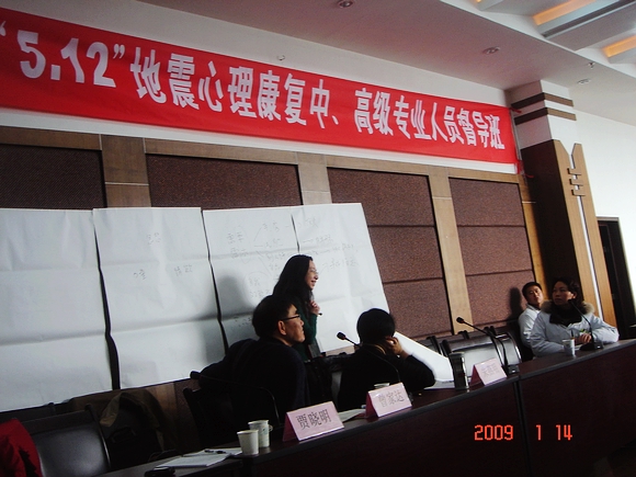 beat365社会工作系主任、应用心理学研究所所长贾晓明教授于2009年1月11日到16日再次到四川灾区进行心理援助工作。此次四川之行,贾晓明教授与加拿大多伦多大学曾家达教授、香港朱燕明老师为四川5.12地震心理康复中、高级专业人员进行个案督导,答疑解惑,帮助心理专业人员提高对灾后心理创伤者的心理干预专业能力。