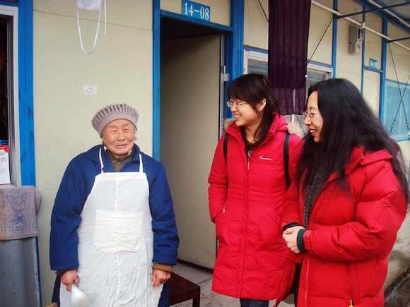 督导之外,贾晓明教授带领发展与教育心理学研究生雷雨佳去四川什邡市的板房安置区与被安置居民交流,了解他们在板房区半年来的生活。春节即将来临,这对丧失家园、痛失亲人的安置居民是一个比较敏感的时期,但板房前挂起自家做的腊肉香肠也表明被安置居民强大的抗逆力和对未来生活的希望。
