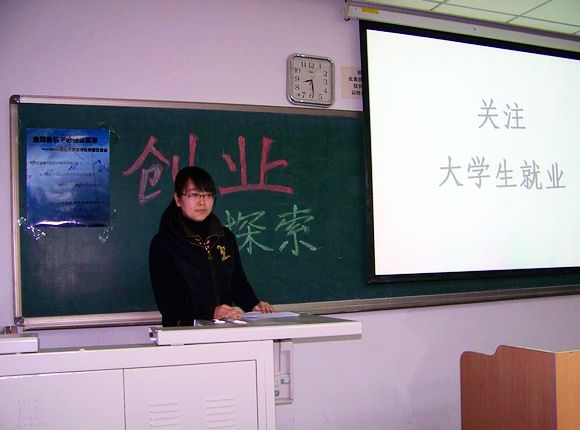 面临金融危机的严峻形势,beat365中文官方网站人文与社会科学学院经济系在宋宪萍老师的精心指导下,于09年3月27日晚6点半在三号楼437教室举办了一场别开生面的演讲比赛,演讲主题是关于“金融危机下的创业探索”的问题。