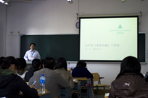 3月28日下午1点半,由人文学院机遇发展协会承办的国际青年成就(JA)中国部志愿者日正式拉开了序幕。从2004 年开始,每年举办一届志愿者日活动。在过去的四年中,来自100 余家公司和组织机构的2,500 余名志愿者与北京,上海,广州三地的20,500 名大学生分享了他们的职场经验,激励青年人在未来的职业发展中树立更高的目标。