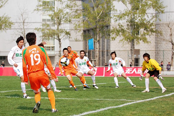 下半场比赛日之泉渐渐的找到了状态利用自己脚下技术好的特点向学生军进行反击,学生军稳扎稳打利用对方急于进攻的心态寻找机会。日之泉多次利用定位球机会威胁北理工的球门。下半场第15分钟学生军针对场上形势再次进行调整,由12号刘猛换下了6号于飞加强中场的防守。