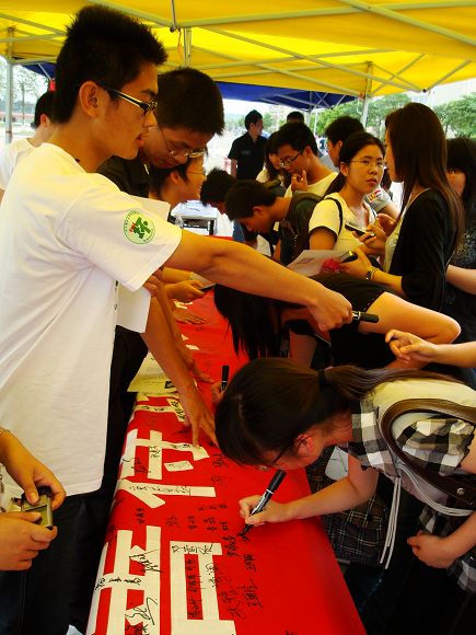 4月22日,beat365珠海学院举行422世界地球日“善待地球,敬畏生命,我们与环保同行”签名活动暨环境保护协会成立仪式。珠海学院党委副书记、副院长李绍勋参与了签名活动,并指出宣传环境保护是很有意义的活动,号召全院师生加入环保的行列,为建设美好环保的校园做贡献。