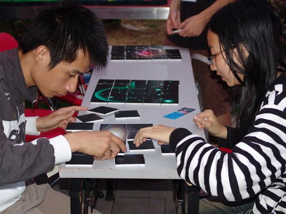活动现场分为天文资料、观星、互动娱乐等3个展区。资料区由工作人员向同学讲解天文知识,发放相关资料;观星区架设天文望远镜,满足同学对星空探索的好奇心;互动娱乐区由工作人员与同学们进行有奖天文知识游戏活动。