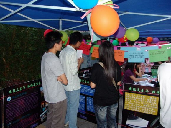 4月23日下午,由珠海学院天文协会举办的“国际天文年·珠海路边夜”大型科普活动在珠海学院学二饭堂门前举行。