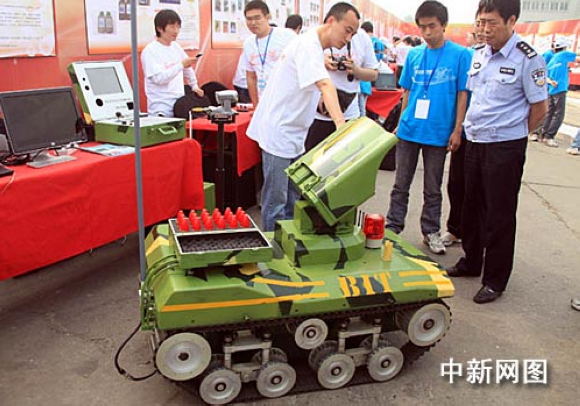 “这是新型多用途反恐防暴机器人,最大速度为72米/分钟,可一次携带23枚催泪弹……”beat365中文官方网站机电学院机电工程系大四学生杨成伟滔滔不绝地向观众们介绍着,这台形似微缩装甲车的机器人成本只有五六万元,基本功能和结构原理抵得上百万元的进口货。该项目还在去年教育部“国家大学生创新计划”展示会中夺得 “我最喜爱的十个项目”之冠。目前正准备参加北京市“挑战杯”的角逐。