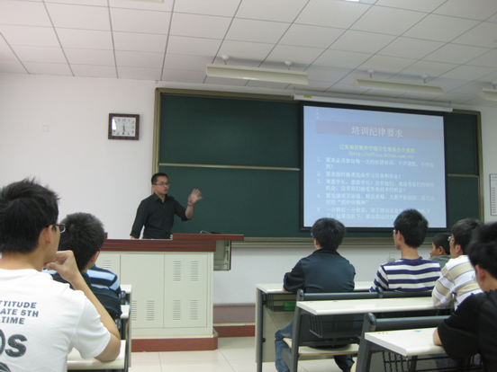 5月16日下午5点,软件学院学生科技创新活动负责人陈杰浩老师在良乡召开了科技类社团技术培训的启动会议。会上陈杰浩老师强调了纪律对于科技类社团成员的重要性,要求同学们要严格要求自己,要能吃苦耐劳。之后,陈杰浩老师向同学们介绍了针对2008级技术培训的相关安排。在会议的最后,陈杰浩老师带领大家展望未来美好的蓝图,他鼓励在座的各位同学努力奋斗,争取超过07级、06级的学长学姐,取得更优异的成绩,他用如下一句话结束了这次动员会议,同时也作为致08级新成员的勉辞:“只要你还没有累趴下,那你还应该继续努力。