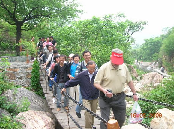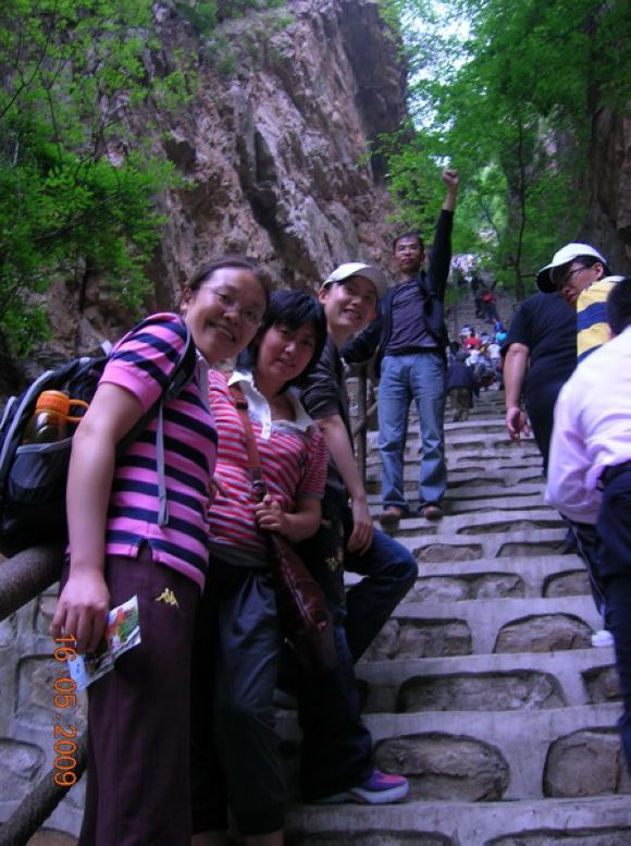 在石林峡自然风景区,同志们走在溪水旁,置身于天然大氧吧中,深吸着来自崇山峻岭小草的芳香,人们说笑着,年轻的搀扶着年纪大的,走在前面的不断回头招呼着后面的伙伴,感觉无比的轻松,……。工会主席蒋本珊老师虽然脚伤还未痊愈,但是为了带动同事们参加活动,她自己忍受着脚伤的痛苦和大家同行,因在山路上行走比较困难,青年教师李侃同志看到此情,主动陪伴着蒋老师甘当一个“小拐杖”,途中他从最陡峭的天梯上走下来,护送蒋老师返回集结地,李老师放弃了个人的游乐,表现出同志之间互相关心,互相爱护的精神。