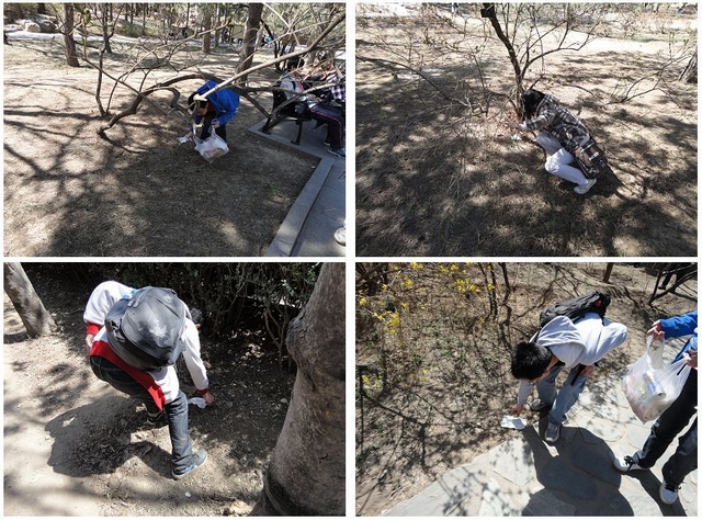 自动化学院励志中队成员利用周末休息时间,在队长李文强、副队长吕宪伟的带领下,乘坐公交车前往植物园开展捡拾垃圾的志愿活动。四月份是草长莺飞的季节,植物园内的桃花、兰花等竞相开放。因周末游客较多,游览过程中,游客随手丢下了很多垃圾。为了还草地的一片清洁,清理园中的垃圾,营造清洁的环境,励志中队的成员在植物园内认真捡起路边的纸屑,捡拾草丛中的垃圾。活动中励志中队人员积极参与,每位成员都感受到了从事义务劳动的必要性、使命感,以及能够为社会做贡献的喜悦感和自豪感。