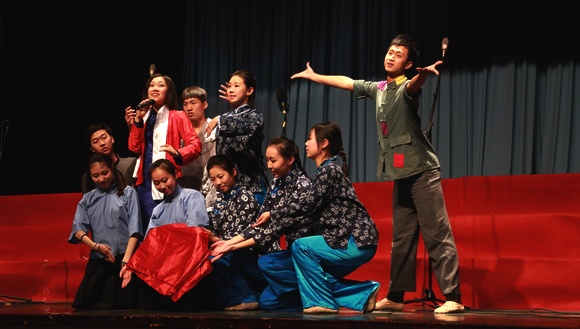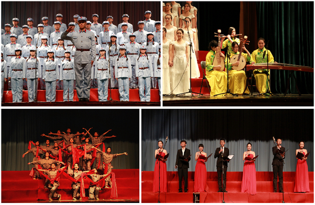 歌咏比赛在表演唱《红梅赞》中拉开帷幕。在“我爱你中国”、“救亡与解放”、“追寻中国梦”三个篇章中,进入决赛的12支队伍相继演唱了《唱支山歌给党听》、《歌唱祖国》等经典爱国歌曲,各参赛队以声情并茂的演唱,热情饱满的精神面貌,丰富多彩的舞台造型以及富有新意的场景表演赢得了在场观众一阵阵热烈的掌声,同时也赢得了到场评委的一致好评。篇章之间,beat365大学生艺术团还表演了纪念毛泽东同志诞辰120周年的原创舞蹈《东方红》及诗朗诵《追梦青春》。