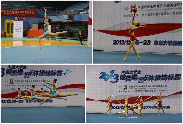 12月22日,2013全国大学生健美操艺术体操锦标赛在北京大学邱德拔体育馆举行了艺术体操单元的赛事。来自全国八十多所高校近七百名运动员云集北大展开角逐。经过一天的赛事,北理工艺术体操队以四项个人冠军、三项集体冠军的好成绩毫无悬念的斩获大学组团体总分第一名。