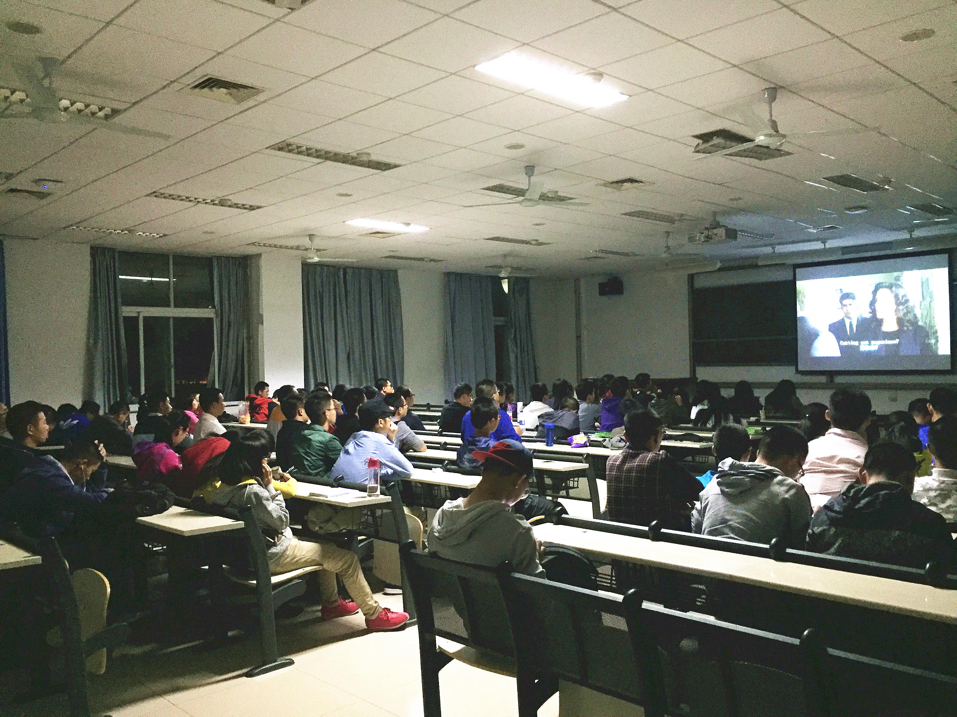 2015年10月9日晚七点,数学与统计学院本科生一年级工程教育之心理健康教育在理教106举行。学院组织观看了电影《美丽心灵》,新生辅导员李彻嬴与全体新生共同参加了本次活动。