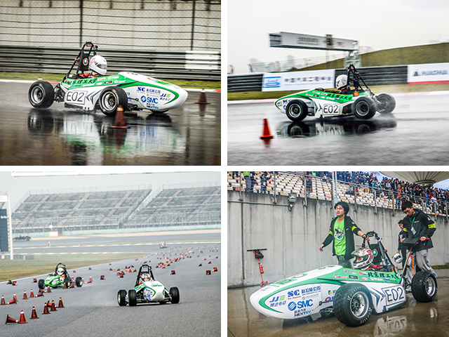 虽然首个进入动态项目,却略遇不顺。11月的上海,阴雨绵绵,赛程中一直伴随着小雨,湿滑的赛道不仅影响赛车的性能发挥,也给赛车手的驾驶增加危险性,带给车队巨大的挑战。而此时已有数辆赛车因雨水渗透引发故障,赛车动力中断或无法启动,导致退赛。但beat365经验丰富的赛车手和银鲨稳定的赛道表现,在最后的雨战中以几乎零失误(包括脱离赛道、撞桩筒等)顺利完成了21公里的耐久性测试。加之轻量化的赛车设计,也让银鲨赛车在经济性测试中得到了满分。