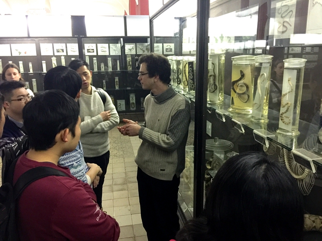 1月13日上午,生态科考团一行来到毗邻莫斯科红场的莫斯科大学最初校址,该建筑始建于1902年,目前是莫大亚非学院的办公地点。在莫大老校址西侧是莫斯科规模最大、历史最悠久的莫斯科大学动物博物馆。莫斯科大学的动物学博物馆是莫斯科历史最悠久、规模最大的自然历史博物馆之一。该博物馆的藏品大多为动物学的重大发现、俄罗斯著名的动物学家的活动及各种相关的科学出版物。该博物馆全面展示了物种的多样性。涵盖了地球上几乎所有的动物种类,约有10000藏品,包括动物、鸟类、鱼类、昆虫在内,这里有3 万多种标本、剥制标本,其中有已经灭绝的斯特拉海牛(斯氏海牛)的骨骼标本、塔斯马尼亚虎的剥制标本等珍奇物品,以及世界闻名的、博物馆“镇馆之宝”:4.5万年之前的“猛犸剥制标本”。它于1900年在雅库特的别廖佐夫卡河河岸的冻土地中被发现,体毛仍然清晰可见。此外,这里还展示着出生约3-4个月的猛犸木乃伊。