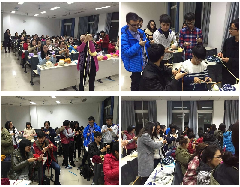 为使同学们迅速掌握编织技巧,失独小组于11月12日、17日分别在良乡校区理教406教室和心理与社会工作实验室举办编织培训活动。贾晓明老师亲自带领小组成员,手把手地教授围巾编织技巧。培训现场气氛热烈,同学间相互交流、相互学习、相互促进。短短2个小时内,现场80余位学生便从刚领到毛线时的茫然与疑惑,达到了熟练掌握了起针、平针、情人扣等基本编织手法的程度。高效率的培训设计与有条不紊的现场组织推动了活动的顺利开展。