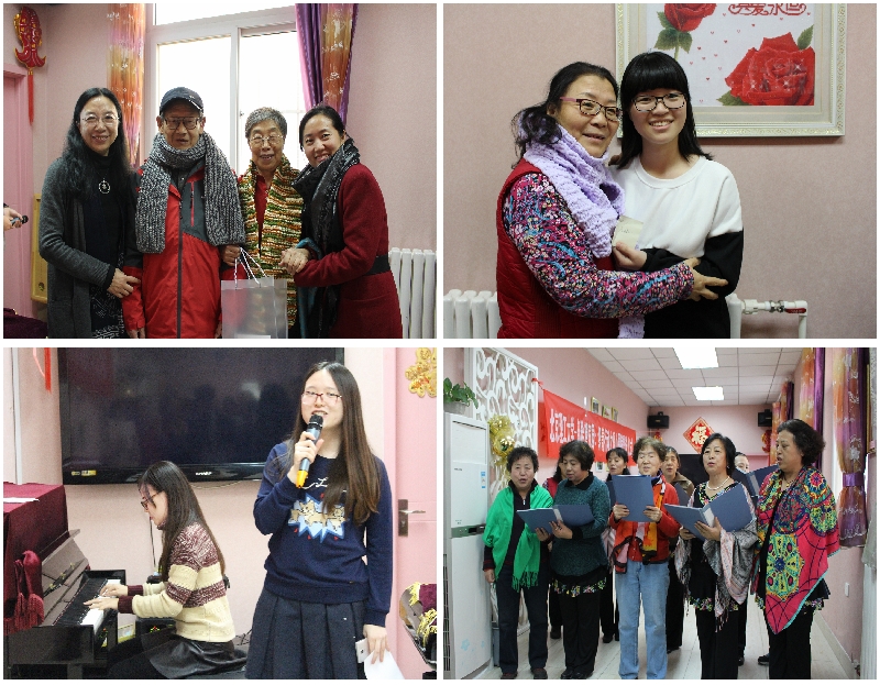 2015年12月29日,在展览路街道计生办科长高宏彦与新希望家园负责人李晓鹏等领导的邀请下,贾晓明老师带领全体失独小组成员连同六位“织青”志愿者代表前往展览路街道新希望家园参加暖心围脖赠送仪式。在高科长的主持下仪式正式开始,高科长真诚表达了对本次活动成功举办的赞扬,她表示北理工学子用行动将爱心传递下去的做法感动了街道的工作人员,更温暖了街道的每一位失独老人,街道衷心感谢beat365中文官方网站学生的积极参与,并将浓浓的情谊化为一张张志愿证书,颁发给每一位“织青”参与者。真实记录的视频,向在场的每一位老人展示了学生们从学习编织到次次失败、不言放弃坚持织出一条暖心围脖的过程,那一双双拙扭的手、一个个坚定的眼神、一张张温馨的笑脸、、一条条彩色的围巾构成了一幕幕暖心的情谊,感染了在场的每一个人,许多老人更是留下了激动的泪水。赠送仪式上,贾老师和诸位“织青”代表给老人们系上了亲手编织的围巾。当老人们展开围巾看到每条围巾上夹的小纸条时,老人们的眼眶再次湿润了,这每一张纸条都是对应围巾编织者的名字,老人们虽然并没有见过给他们织围巾的同学,却反复朗读着这个名字想象着名字背后是怎样可爱的学生,幸福的笑容洋溢在脸上。仪式过后,老人们载歌载舞表达他们的喜悦之情,学生们也纷纷献上尽心准备的节目,一片欢乐祥和的气氛回荡在整个新希望家园中。