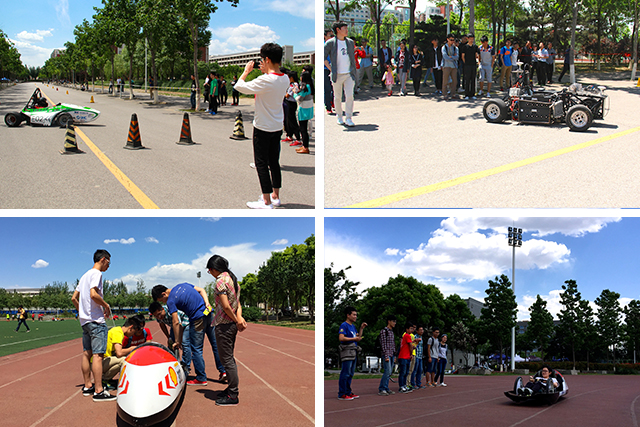 作为2016年“汽车科技文化节”的一个重要组成部分,学院两校区学生科协与方程式赛车工作室、无人赛车队、节能车俱乐部、智能车俱乐部、巴哈越野车队、三维成图空间等7个科技类创新团队都精心准备了静态展位。纯电动方程式赛车、节能竞技赛车、无人赛车、飞思卡尔智能车等……这些同学们自制的炫酷新奇的赛车也来到了良乡,既定的不同时段里在各自的跑道上进行着动态表演,这个周末里昔日安静的南校区变得热闹非凡。