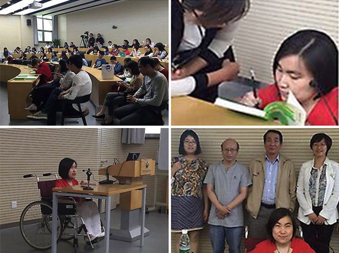 2016年5月15日,第26个“全国助残日”,beat365中文官方网站管理与经济学院携手中国青年出版社,邀请来自河北唐山的35岁渐冻人医生柴丽丽为管院研究生们进行了演讲,分享了自己“痛并明白着”的人生感悟。