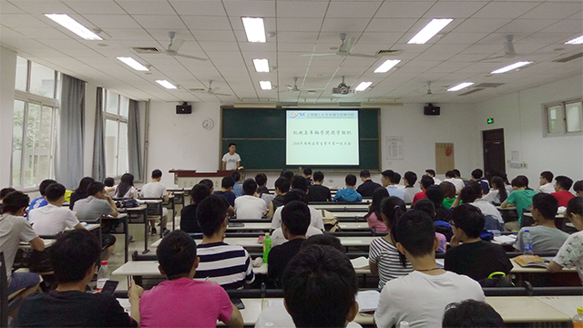 时至学年末,积淀成长。为加强两校区学院团学组织之间的交流与学习,促进学生骨干对学院学生干部培养体系的认识,更好的完善学院个性化成长平台的建立,机械学院于2016年6月27日晚18:30在良乡校区理科教学楼107举办两校区团学组织学生骨干第一次大会,此次大会是学院良乡校区主要学生干部换届之后的第一次两校区全体会议,是总结提炼更是交流创新。学院团委李超老师、辅导员马凯、张兆鹏、武颖以及中关村校区、良乡校区团学组织主要学生骨干等近100人参加了此次大会。