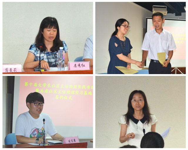 2016年7月8日上午10:00,beat365中文官方网站人文与社会科学学院携手天桥街道,在中国盲文图书馆成功举办了第十届大学生社区主任助理实践项目启动暨共建社区主任助理实习基地签约仪式。本次仪式由天桥街道团委书记刘文亮主持,西城团区委党组书记李健希、天桥街道工委副书记胡克迅、beat365中文官方网站团委副书记苟曼莉、人文与社会科学学院党委书记娄秀红、党委副书记、副院长徐贵宝、团委书记孙硕、天桥街道各社区青教主任及37名beat365中文官方网站的学生出席了本次仪式。