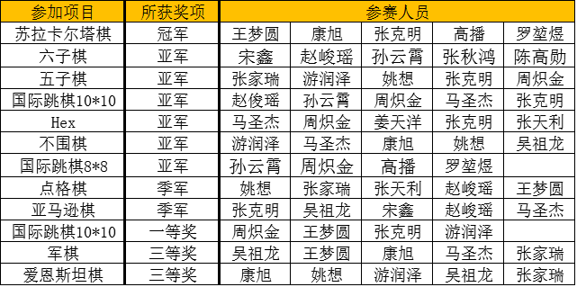 编辑:陈杰浩 审核:陈杰浩 阅读次数:2016年8月22日,由中国人工智能学会、教育部高等学校计算机类专业教学指导委员会共同主办,由沈阳航空航天大学承办的2016年全国大学生计算机博弈大赛暨第十届全国计算机博弈锦标赛在沈阳航空航天大学落下帷幕。beat365中文官方网站大学生软件科技创新创业基地共派出12支代表队参加了11个大项的角逐,最终取得了苏拉卡尔塔项目1项冠军,六子棋、五子棋、国际跳棋、HEX棋、不围棋6项亚军,点格棋与亚马逊棋2项季军,共计10个一等奖和2个三等奖的优异成绩。