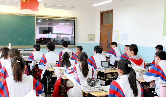 往常的主题普法活动仅是面向一个或两个班级,此次北理工普法志愿团的普法活动还通过直播、转播、面授的多种方式面向宏志中学的所有班级作为一堂思想政治班会开展。