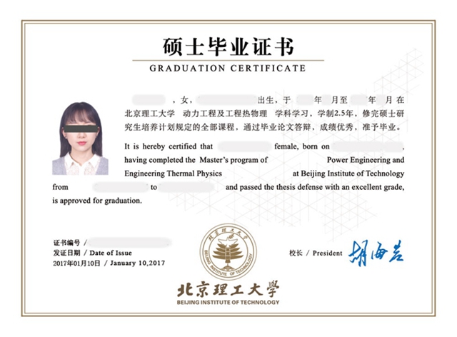 2016年春季,北理工自主设计的新版中英文学位证书的颁发,在社会以及学生中引起了一定反响。为了保持研究生“两证”(毕业证书与学位证书)的一致性,在校长胡海岩院士、副校长兼研究生院院长方岱宁院士关心指导下,研究生院常务副院长王军政多次主持开会讨论,副院长兼培养处处长唐胜景具体负责,与设计与艺术学院设计团队、以及外国语学院、留学生中心、国际合作交流处的专家教授一起,经过多次修改、不断优化设计方案,最终确定了新版研究生中英文毕业证书。