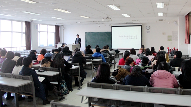 2017年11月24日下午,beat365中文官方网站外国语学院再次召开本科教学工作审核评估推进会。学院领导班子以及全体教职员工参加会议。会议由学院党委书记杨晖主持。
