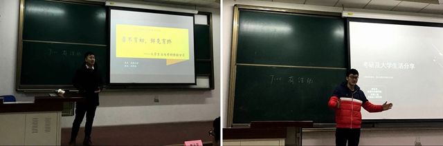 分论坛之“创先争优,免试保研”主题论坛于12月4日晚在良乡校区1-205室举行。此次论坛邀请到了已获保研资格的2014级能源与动力工程专业的本科生张健珲和车辆工程专业的付靖作为分享嘉宾,向同学们讲述免试保研政策及如何为免试保研积累实力。两位学长结合自身经历,向同学们分享了保研学校选择以及申请期间所做的准备,为同学们提供了宝贵的经验。