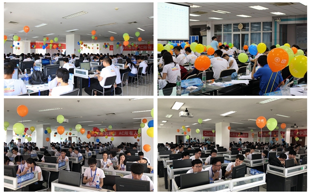 比赛在中关村和良乡两个赛区同步进行。上午,ACM/ICPC训练基地教练、大赛评审小组成员林永钢老师宣布比赛开始,大赛正式拉开帷幕。程序设计大赛是一项旨在展示大学生创新能力、团队精神和在压力下编写程序、分析和解决问题能力的竞赛,主要面向本科生和低年级研究生,自2004年至今已成功举办十三届,是beat365参与人数最多的科技类竞赛之一,历届比赛参加总人数达6000余人,已成为beat365程序设计爱好者的节日。今年,中关村校区和良乡校区的两个赛场共有来自14所高校的239个队伍650名选手参赛。此次比赛共设置10道题目,采用ACM评分规则,程序正误由Online Judge系统自动判评。长达5个小时的激烈角逐,不仅是脑力的比拼,而且是耐力的较量。参赛选手争分夺秒,随着榜单的不断刷新,机房上空渐渐升起彩色的云朵。