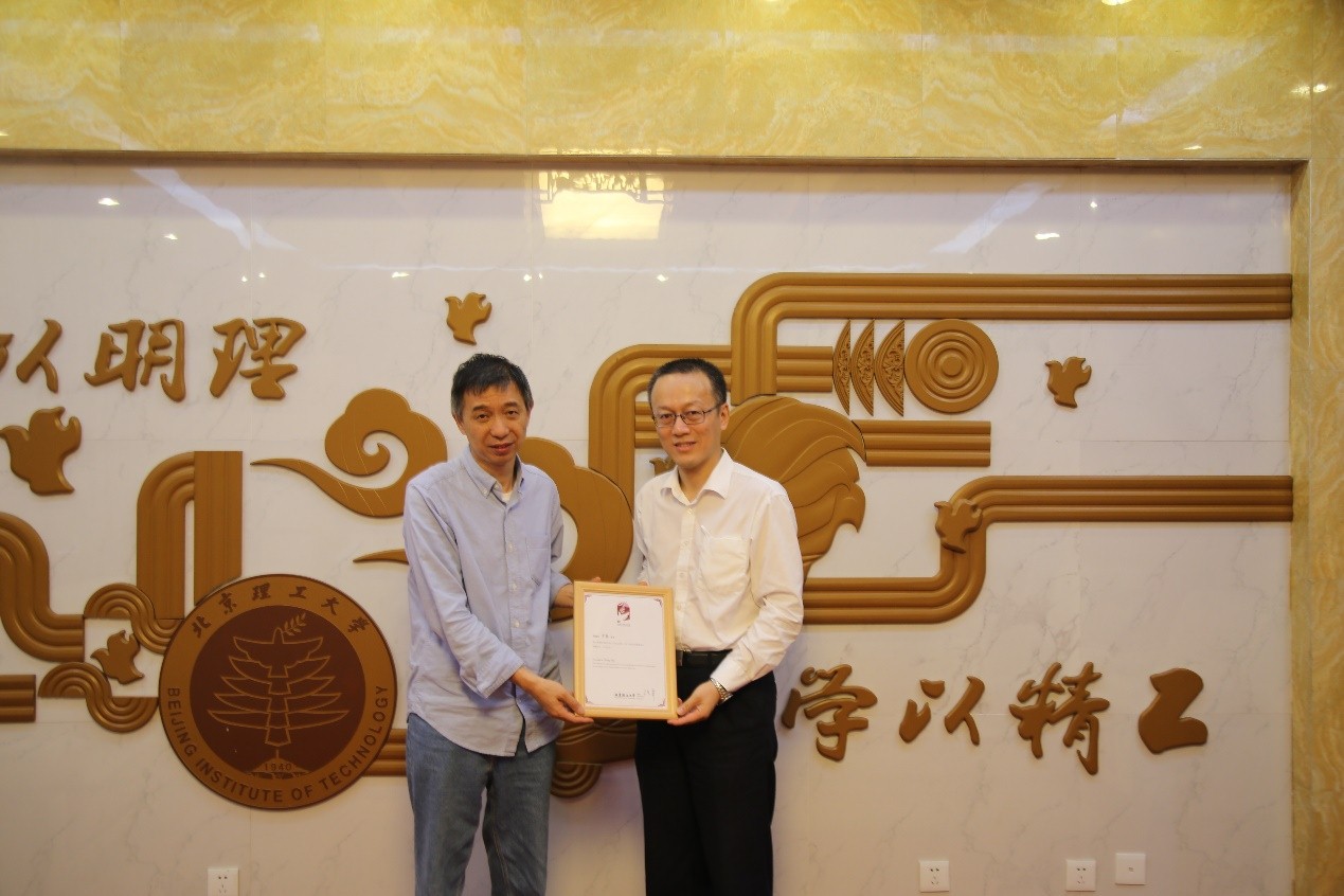 讲座前副校长龙腾为王坚博士颁发了北理工“百家大讲堂”讲座纪念证书。