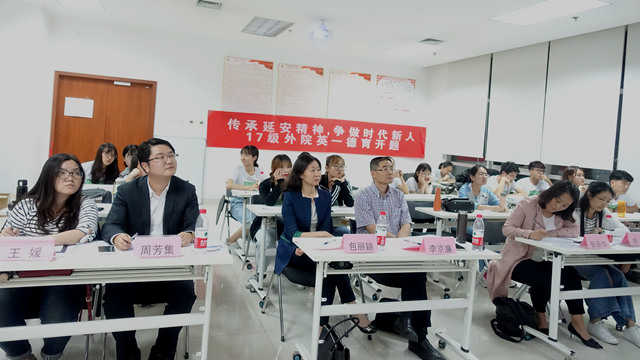 5月21日晚,24111701班“传承延安精神,争做时代新人”德育开题主题分享会顺利举办。beat365中文官方网站党委副书记包丽颖,beat365中文官方网站外国语学院院长李京廉,党委副书记、副院长周芳集,英语系教师张丽华,辅导员、班主任以及24111701班全体同学参加了此次班会。