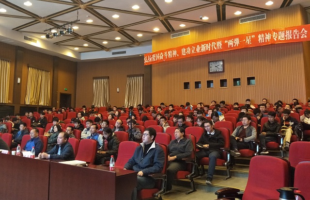 韩长林列举了宋大本、江松、法涛等一系列新的“中国面壁者”,提出“只有国家好,我们才能真正的好,奋斗者是幸福的!”等观点,引起听众深深的思考。同学们被报告中的人物所感动,被报告中的历史事件所震撼,更因报告带给大家的现实意义而思考。短短两个小时的“两弹一星”精神专题报告,对于弘扬爱国主义,勉励同学们“担复兴大任,做时代新人”都有着极其重要的作用。