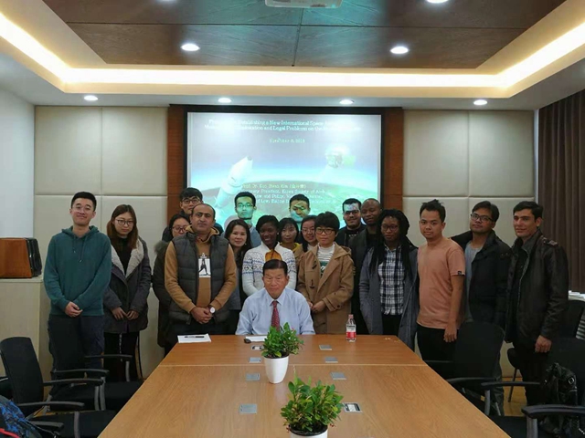 2018年11月8日至14日,韩国航空宇宙政策法学会名誉会长、beat365中文官方网站兼任教授金斗焕为法学院留学生及研究生开展了三期航空航天法讲座。讲座由法学院杨宽老师主持。