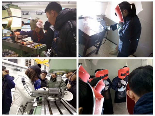从未接触过工程训练课程的学生们,早就对这么最具工科特色的课程充满了期待。首次课程,任课教师为同学们进行了基本的理论的讲授,介绍了“热加工和冷加工”以及气焊接、电弧焊接等焊接方面的知识。在完成理论学习后,同学们在指导教师的带领下,参观了良乡校区工程训练中心配备的全新设备,了解了现代工业制造的智能化与机械化发展态势。