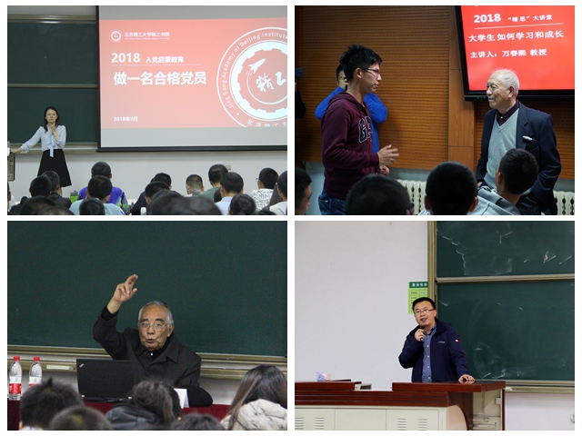 院士、知名专家担纲主讲,成为“精·思”大讲堂的特色。中国工程院院士栾恩杰在讲座中对学生们提出了“不忘初心,牢记使命,发扬老传统,创造新辉煌”的要求和希望;中国工程院院士吴伟仁以中国航天事业的发展为题,点燃了学生对祖国辉煌的航天事业的自豪与骄傲;爆炸科学与技术国家重点实验室钱新明教授以“一场惊天大爆炸背后的秘密”为题,为精工学子们带来了一场引人入胜的讲座;中国工程院院士李魁武、中国工程院院士邱志明分别为大家介绍了我国末端防空反导武器系统技术和舰艇作战系统的发展,让学生们了解了我国国防力量的强大,极大地激发了学生们的爱国激情和学习热情,同时也深刻意识到党和国家赋予青年人的伟大责任与使命。
