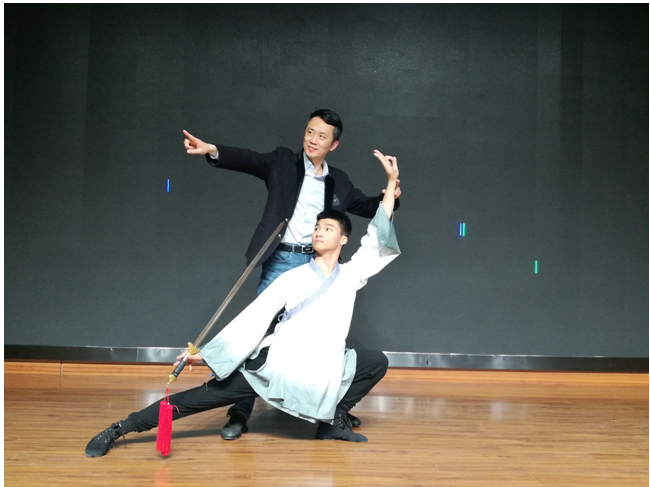 金浩教授的讲座以距今三千年历史的古老兵器剑为载体,从古老的剑器讲到今天古典舞蹈道具,从技术层面、传统文化层面和舞蹈审美意蕴层面,给同学们带来了集理论实践于一体的剑舞盛宴。让同学们体悟剑是中国韵味的文化利器与礼器,剑文化的古典与再现古典,以及古典剑舞身韵中“剑由身带,意由剑显”的古典精神理念。通过现场剑舞展示和视频剑舞片段欣赏,让同学们在身法和剑法不断磨合相融中,加深对这八个字的理解。