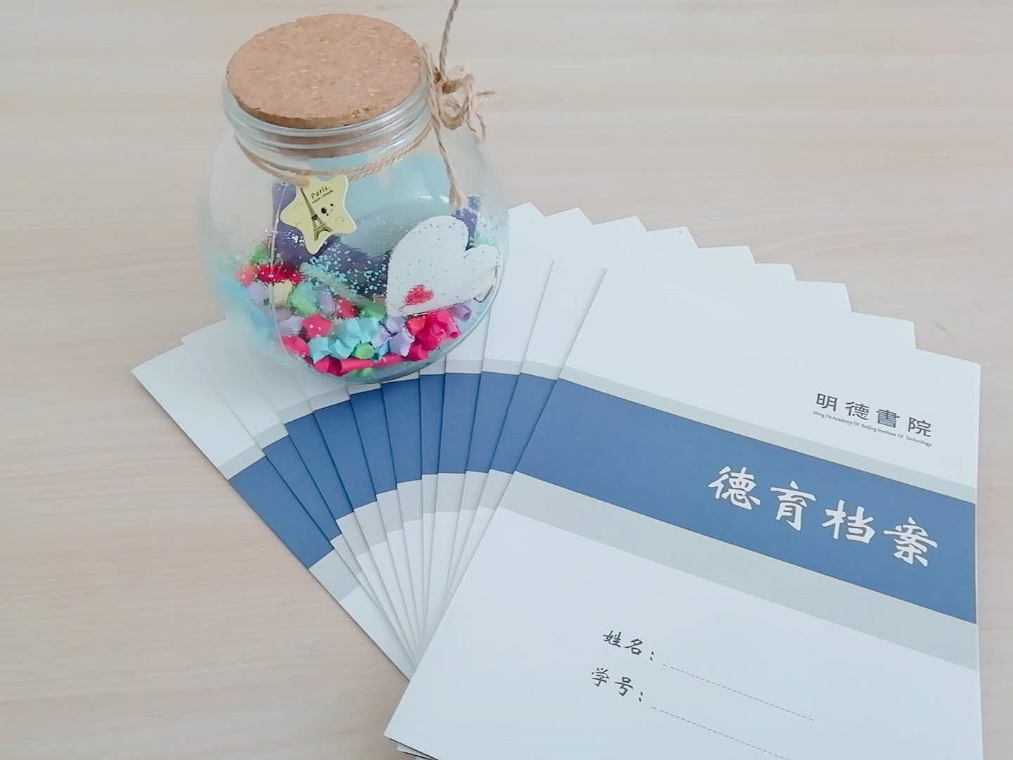 同时,书院为每名同学定制了心愿卡片和德育档案,也为班级定制了心愿瓶。书生将写满大学规划的心愿卡片和寄托美好心愿的星星放至班级心愿瓶中,班级心愿瓶将在德育答辩时启封,见证书生四年的成长;德育档案则用于记录书生四年的成长足迹,将德育开题、德育中期、德育答辩全过程记录下来,作为书生一份珍贵的毕业礼物。
